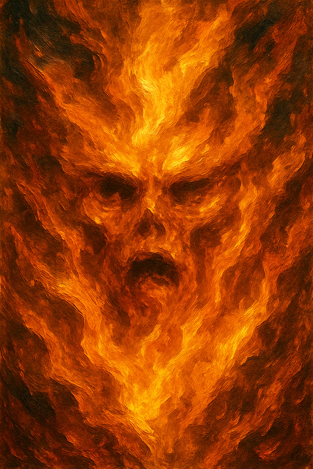 Sein Feuer zitterte. Zum ersten Mal in Jahrhunderten flackerte es – nicht aus Zorn, sondern aus Erinnerung. Die Flammen formten ein Gesicht mit suchenden Augen. Sein Blick erfasste die junge Priesterin – ein letzter Blick in diese Welt. Dann formten seine brennenden Lippen die Worte: „Zu spät.“